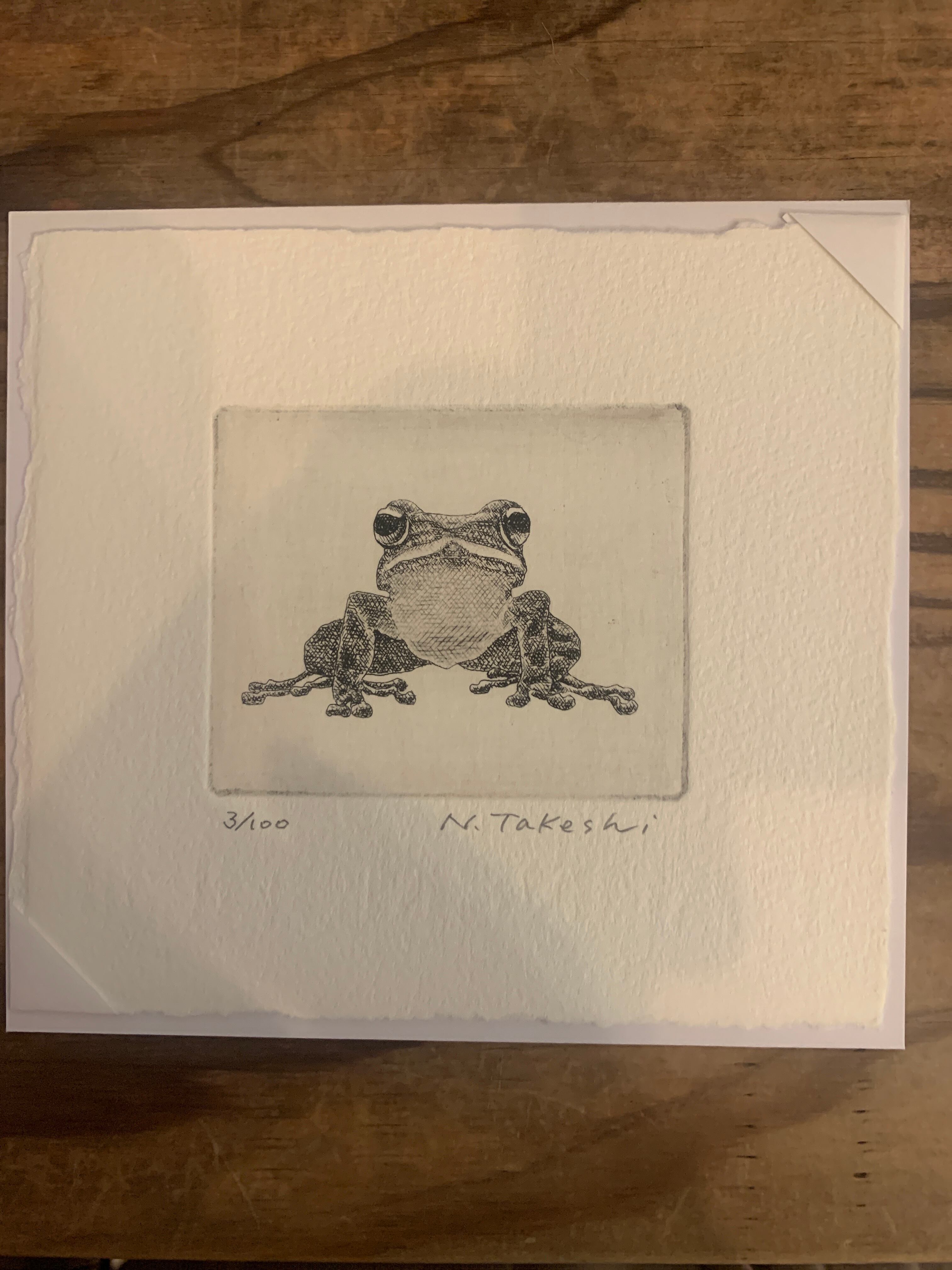 銅版画家 中井武志先生の作品 横 13cm × 縦 12cm 約 かえる 3/100
